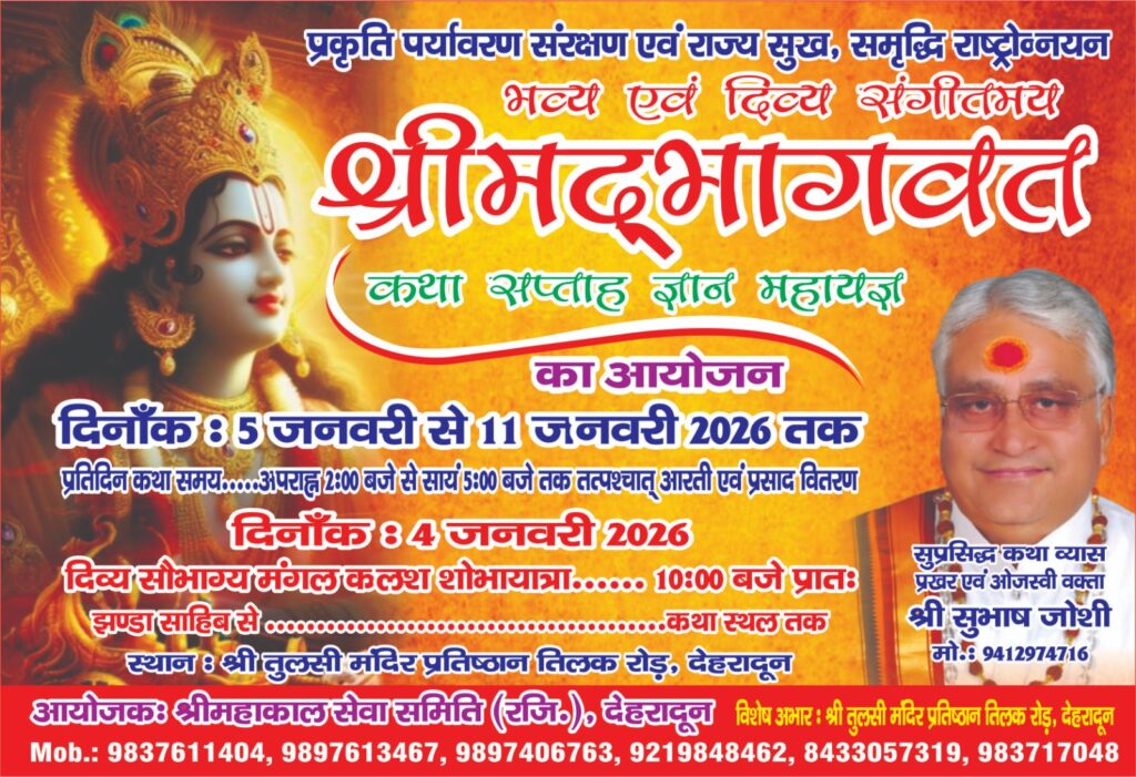 इस अवसर पर सुप्रसिद्ध कथा व्यास सुभाष जोशी जी ने राज्य की सुख समृद्धि की कामना लिए छेत्र वासियों से कहा कि वे अधिक से अधिक संख्या में कथा में भाग ले, जिसमें तुलसी मंदिर के अध्यक्ष अश्विनी अग्रवाल व समिति के बालकिशन शर्मा, एडवोकेट संजीव गुप्ता, डॉक्टर नितिन अग्रवाल, आलोक जैन, हेमराज अरोड़ा, राहुल माटा, सचिन आनंद,आयुष जैन, गौरव जैन, विनय प्रजापति,अंशुल बंसल, विक्रम सिंह, सुमित बंसल, शिवकुमार गुप्ता, सुरेश रावत, सुशील वाधवा, कृतिका राणा, अनुष्का राणा उपस्थिति रहे