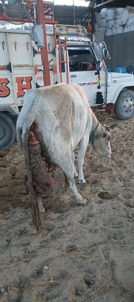 Doon Animal Welfare की गौशाला में आज एक गंभीर हालत में मिली गाय की जटिल लेज़र सर्जरी सफलतापूर्वक की गई। यह गाय कई महीनों से Uterine Prolapse की पीड़ा झेल रही थी, जिसमें उसकी बच्चेदानी पूरी तरह बाहर निकलकर जमीन तक लटक रही थी और कठोर हो चुकी थी। अत्यधिक प्रसव तनाव, कैल्शियम की भारी कमी और लंबे समय तक बिना इलाज के रहने से स्थिति बेहद भयावह बन गई थी। मुख्य पशु चिकित्सा अधिकारी एस.के. जोशी के मार्गदर्शन में पशुपालन विभाग के डॉक्टर साजिद अली (प्रेमनगर) और डॉक्टर ईमरान अली (बालावाला) तुरंत गौशाला पहुंचे और दोनों ने मिलकर अत्यंत जटिल लेज़र सर्जरी को अंजाम दिया।