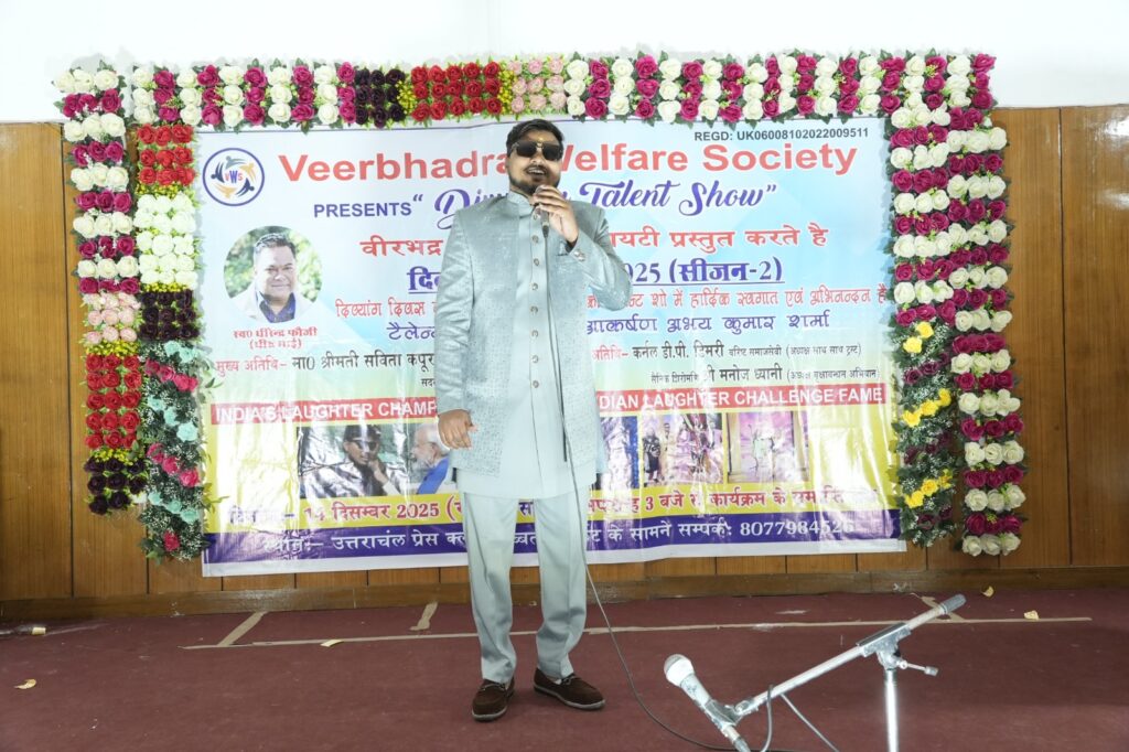 देहरादून के उत्तरांचल प्रेस क्लब में रविवार को वीर भद्र वेलफेयर सोसाइटी द्वारा दिव्यांग जनों के लिए एक भव्य टैलेंट शो का आयोजन किया गया। इस कार्यक्रम में दिव्यांग कलाकारों ने अपनी प्रतिभा से यह साबित कर दिया कि कला और आत्मविश्वास किसी भी शारीरिक सीमा के मोहताज नहीं होते।