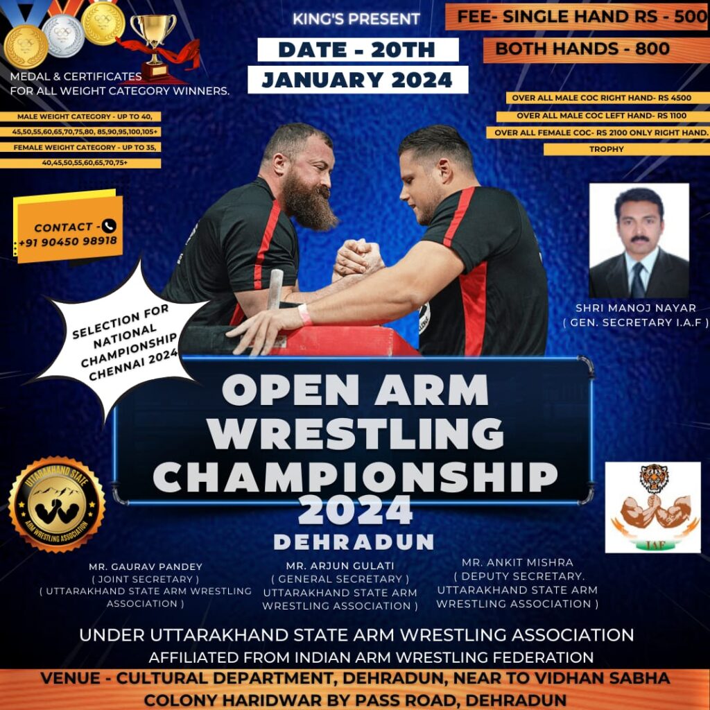 देहरादून में होने जा रही एशियाई और विश्व कप डेडलिफ्ट और बेंच प्रेस चैंपियनशिप 2024. 19-01-2024 से 21-01-2024 तक जिसमें अलग-अलग देश के खिलाड़ी भाग लेंगे। ये प्रतियोगिता श्री अर्जुन गुलाटी जी प्रस्तुत कर रहे हैं। उत्तराखंड देहरादून मैं दूसरी बार अंतरराष्ट्रीय प्रतियोगिता होने जा रही है. अंकित मिश्रा जी और गौरव पांडे जी मुख्य भूमिका निभा रहे हैं.