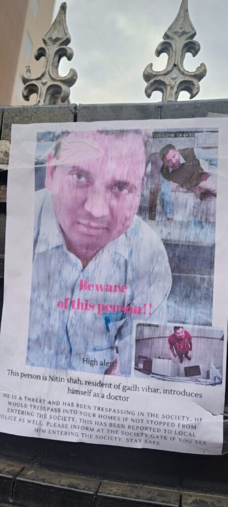 वह एक खतरा है और समाज में अतिक्रमण कर रहा है। यदि उसे सोसायटी में प्रवेश करने से नहीं रोका गया तो वह आपके घरों में घुसपैठ करेगा, इसकी सूचना स्थानीय पुलिस को भी दी गई है, यदि आप उसे सोसायटी में प्रवेश करते हुए देखें तो कृपया सोसायटी गेट पर सूचना दें।